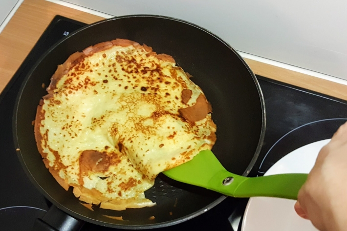 Faites cuire les crêpes, bien fines, dans une poêle très chaude.