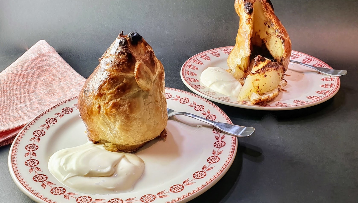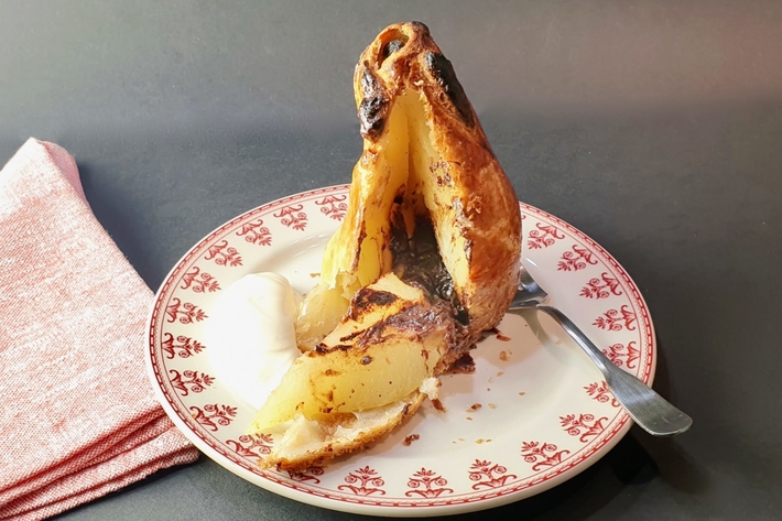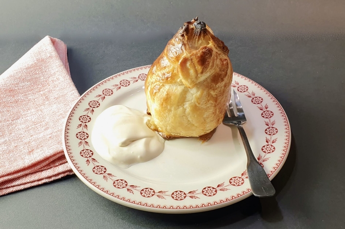 Les douillons, à l’origine, sont normands. En Picardie, on les appelle des bourdelots. Ce sont des poires –ou des pommes– évidées et emmaillotées dans de la pâte brisée ou feuilletée. Les recettes habituelles demandent de préalablement pocher les poires, mais c’est complètement inutile, puisque les fruits cuisent au four très chaud une demi-heure dans la pâte. Voilà donc un dessert rapide à cuisiner et absolument délicieux !