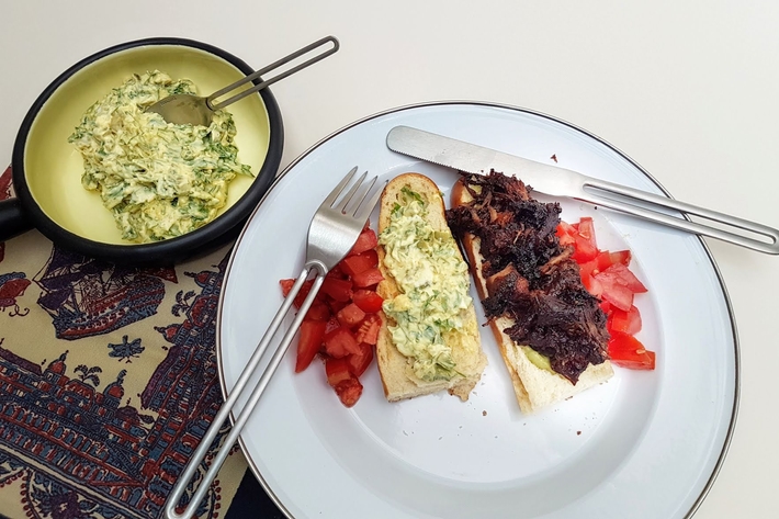 Sur l’autre moitié de pain, étalez la sauce mayonnaise-persil-cornichons.
