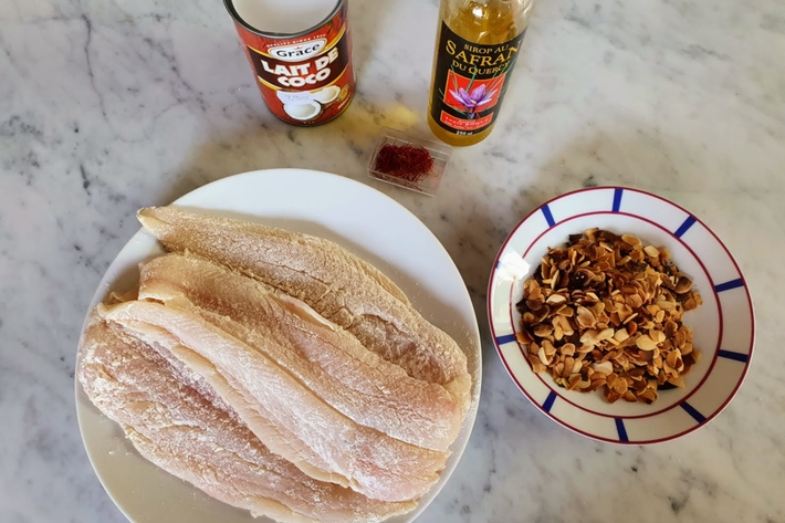 Replacez les filets de merlan dans la poêle, saupoudrez-les avec les filaments de safran et faites réchauffer environ 2 minutes.