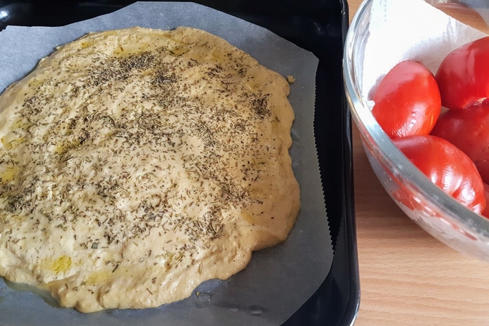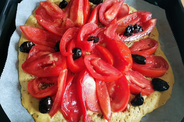 Pour la Coupe du monde, il fallait bien prévoir une soirée pizza, mais pizza maison, avec des tomates entières, à la demande générale. Comme c’est la pâte à focaccia qui a servi de pâte à pizza, on l’a baptisée “focaccizza” (prononcez focatchizza).