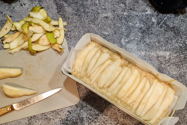 Épluchez les poires, épépinez-les puis taillez-les en tranches.