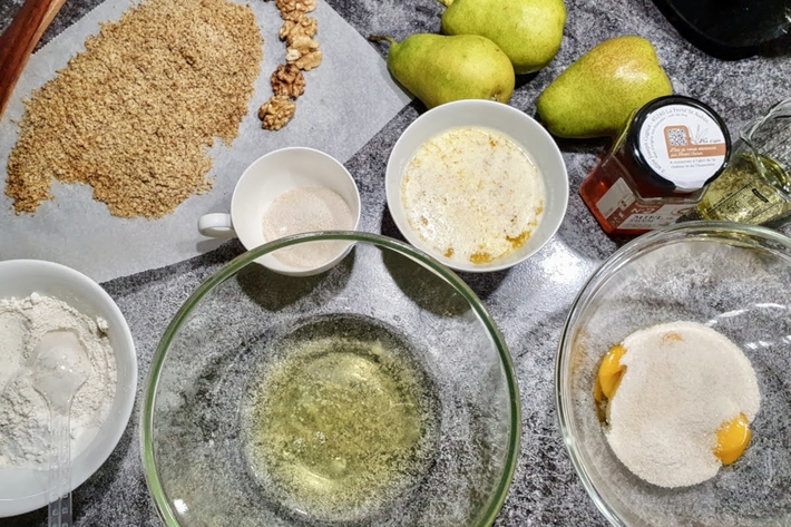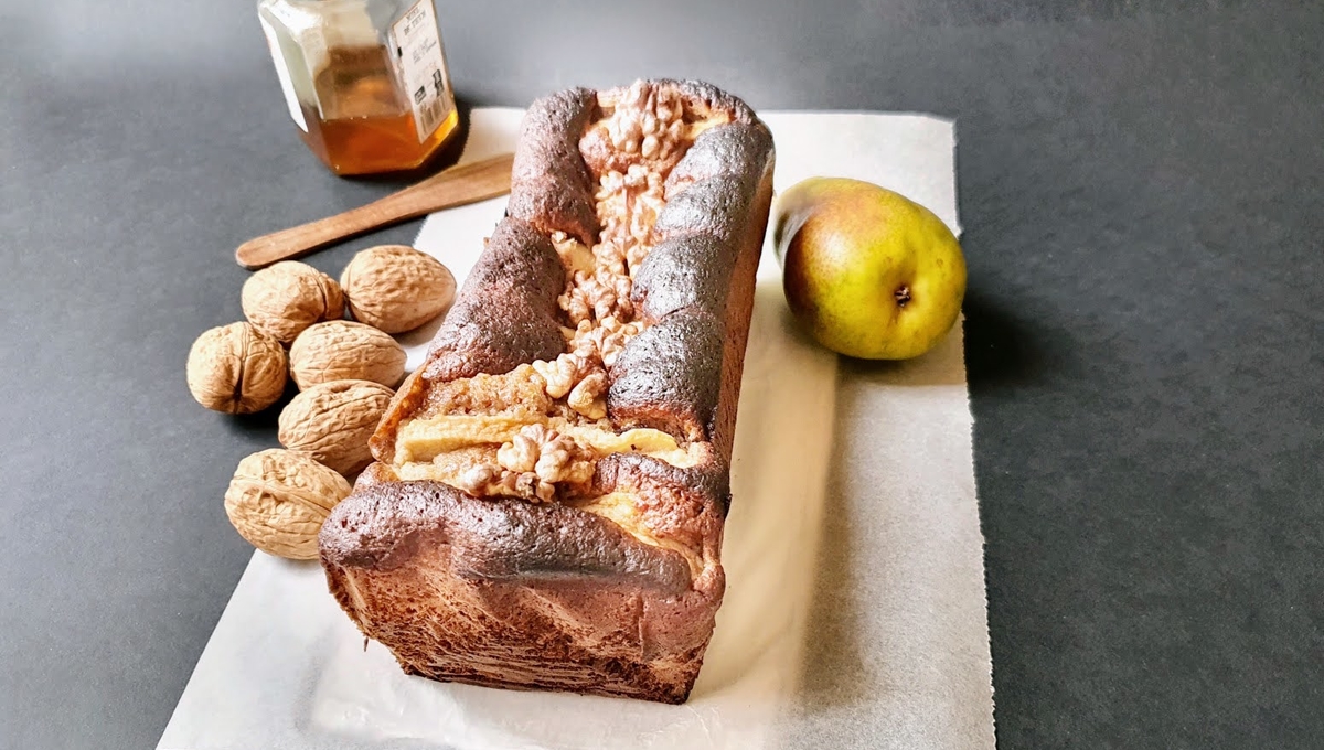 Les noix et les poires se marient particulièrement bien, notamment en confiture. Mais en pâtisserie aussi ! Ajoutez-y une belle proportion de beurre et de miel pour obtenir ce délicieux fondant, réconfortant goûter d’hiver.