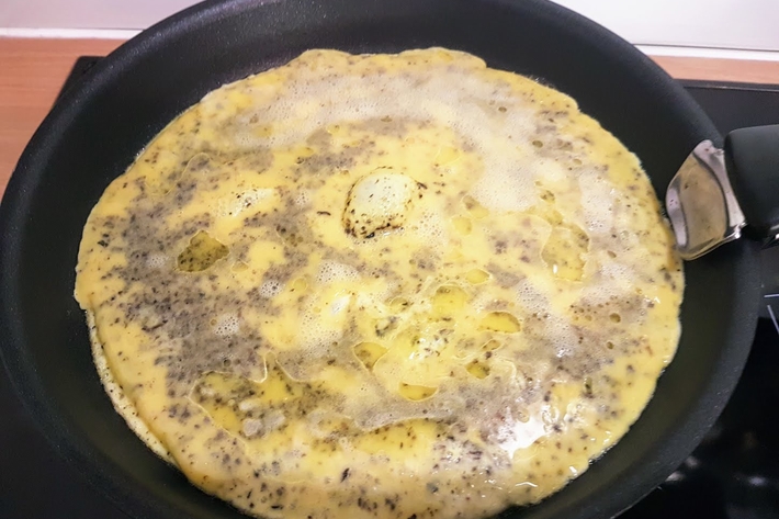 La durée dépend de la taille de la poêle et de l’épaisseur de l’omelette.