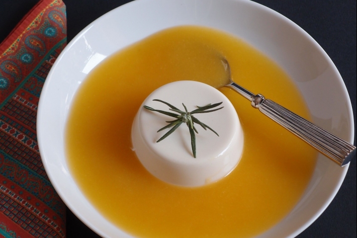 Piquez une brindille de romarin dans la glace au yaourt ou dans la panna cotta et servez.