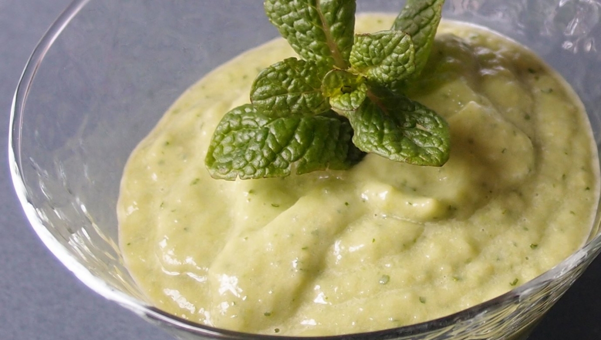 Lavez la menthe, séchez et effeuillez-la. Ajoutez le feuilles aux autres ingrédients.