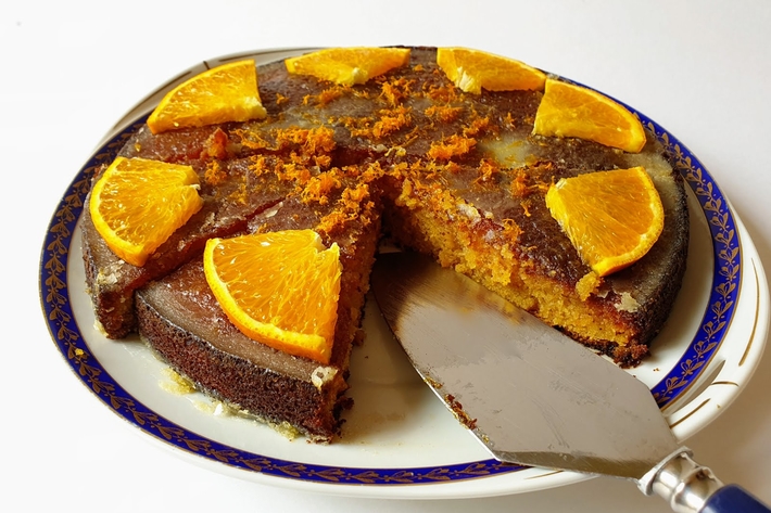 Il y a mille gâteaux à l’orange. Celui-là est à la fois facile et assez rapide à faire et, hormis deux oranges, ne fait appel qu’aux produits du placard. C’est la recette de la grand-mère du chef aux trois étoiles, Georges Blanc, à Vonnas, rapportée par le magazine “Saveurs”. Le travail des ingrédients n’obéit pas à l’ordre habituel, ce qui explique probablement sa texture grumeleuse d’un moelleux sans pareil.