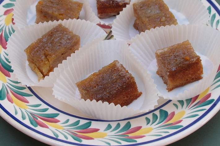 “Vous pouvez tenter un glaçage avec 200 grammes de sucre glace et une ou deux cuillerées à soupe de jus d’orange. Recouvrez le dessus du gâteau de ce glaçage avec une spatule souple. Mettez au réfrigérateur. Mais le résultat n’est pas garanti, le gâteau étant assez humide.”