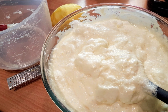 Ajoutez la Maïzena et râpez le zeste du citron par dessus. Mélangez bien.