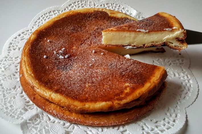 En fait, ce gâteau n’est que la garniture de la tarte au fromage blanc alsacienne, sans le fond de tarte. C’est plus léger. Si vous avez du fromage blanc fermier, il n’en sera que plus savoureux. Beaucoup de recettes ajoutent même de la crème fraîche.