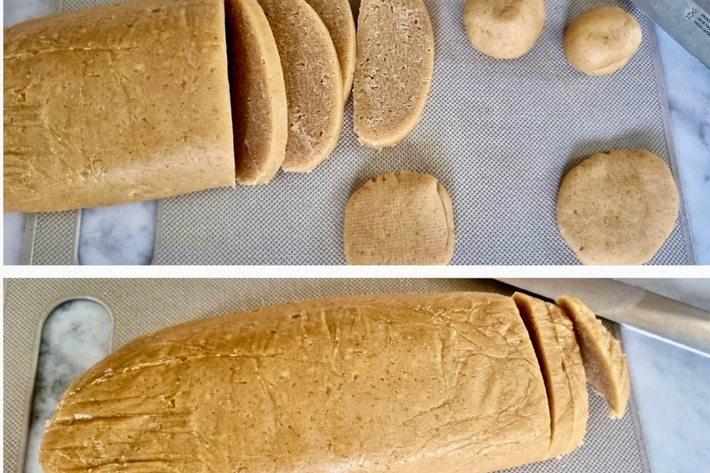 Coupez alors le pâton en tranches, puis formez des grosses billes de pâte d’environ 3 centimètres de diamètre.