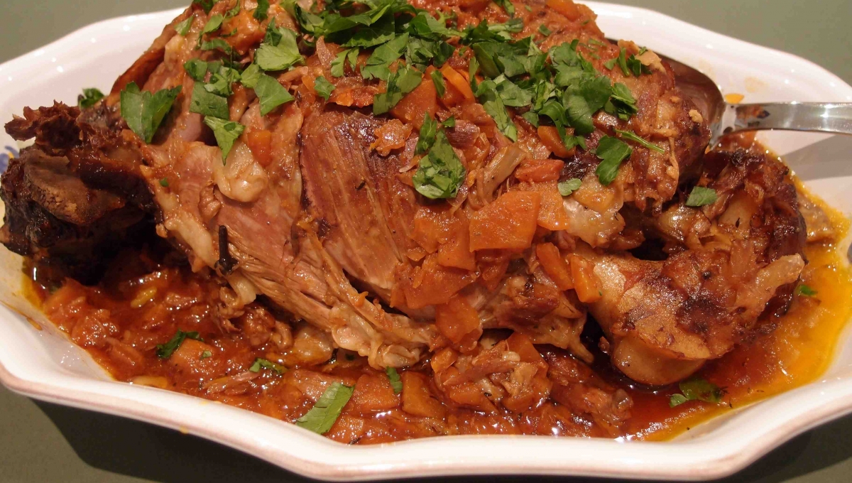 “Après sept heures de cuisson lente, le gigot devient fondant au point de se détacher à la simple cuiller.”
