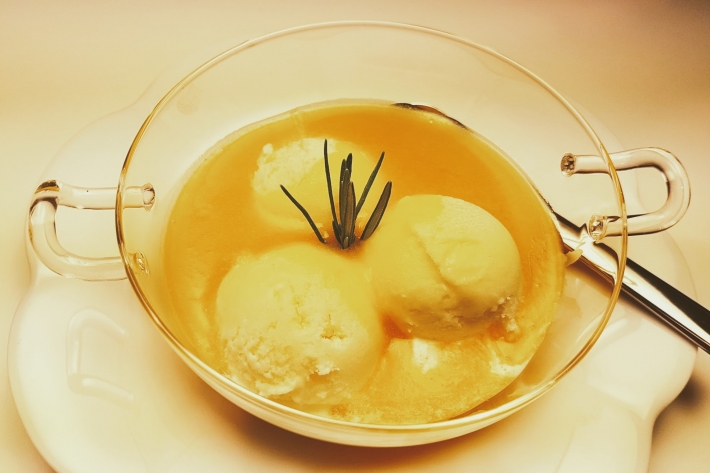 “Servez avec un gaspacho d’abricots au romarin, par exemple, et des amaretti.”