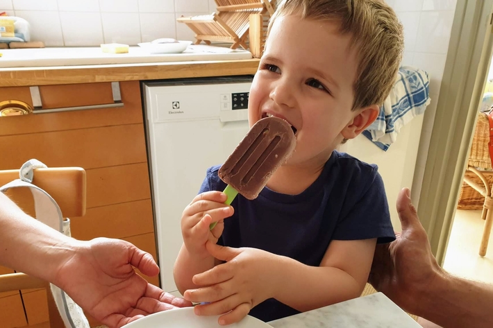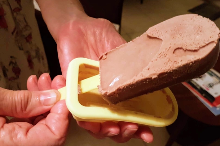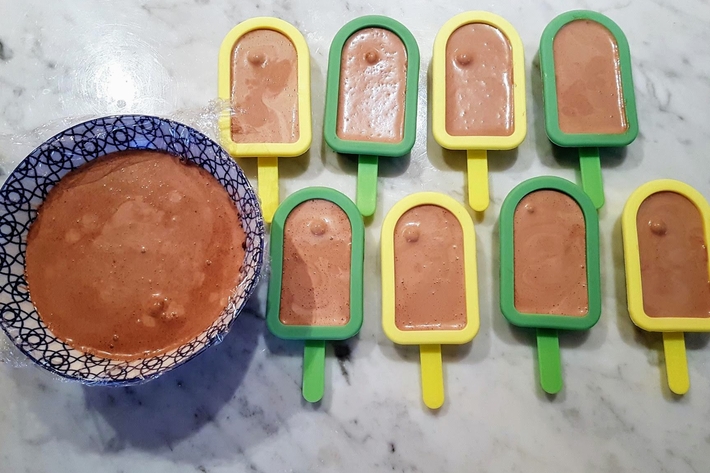 Pour réjouir la jeune classe : répartissez dans des moules à esquimaux en silicone (que vous trouvez chez Hema, par exemple, ou dans la marque Tupperware) ! Laissez prendre et c’est tout.