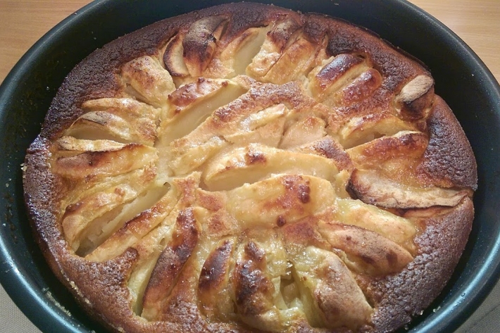 Une spécialité du Poitou à base de pommes, qui se rapproche du clafoutis : le Limousin n’est pas loin. Ce n’est pas très loin non plus de la flognarde corrézienne. Mais mon amie Dominique ne retrouvait pas dans toute la blogosphère, où la même recette est partout reproduite, la grimolle de sa grand-mère. J’ai essayé de relever le défi : ce n’est toujours pas la fameuse grimolle de sa grand-mère, mais tout a été mangé…