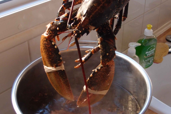 “Les homards bretons, vivants, sont bleus et rougissent à la cuisson. Ils sont meilleurs que les homards canadiens, rouges.”