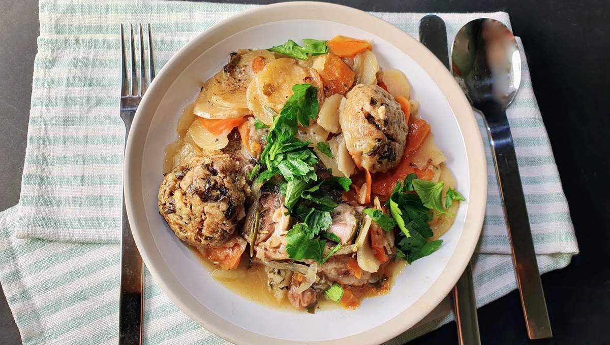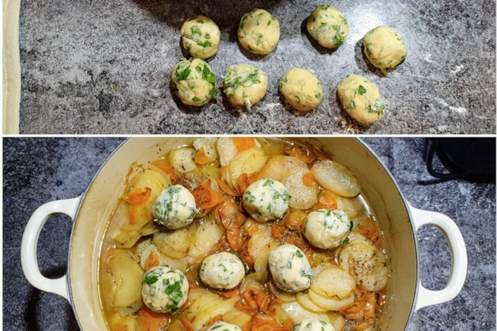 Rien de plus réconfortant que ce ragoût d’agneau, typiquement irlandais, accompagné de “dumplings” ! Ces boulettes, sortes de quenelles (qui peuvent rappeler les Knödel autrichiens), se marient à merveille avec la sauce. L’irish stew réchauffe par temps gris et froid ou pluvieux. Chacun(e) y va de sa recette, mais j’ai opté pour la plus rustique du blog de Gav’s Kitchen et celle du blog d’Hélène Picken, Chez Becky et Liz, pour les proportions des boulettes.