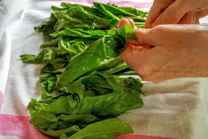 Rincez l’oseille sous l’eau et séchez-la dans un torchon propre.