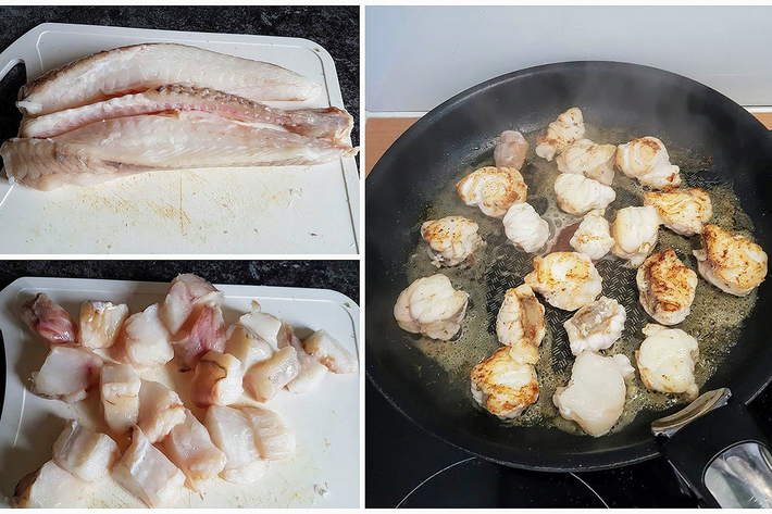 Tronçonnez le poisson en morceaux (de la taille de noix de saint-jacques).