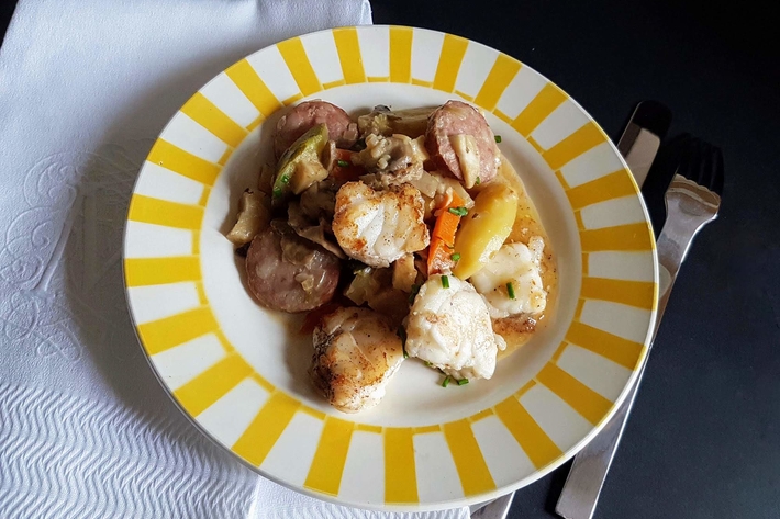 “Les légumes ainsi cuits et dans cette sauce pourraient très bien se prêter à autre chose que de la lotte. Par exemple à davantage de morteau, en en comptant une pour deux personnes.”
