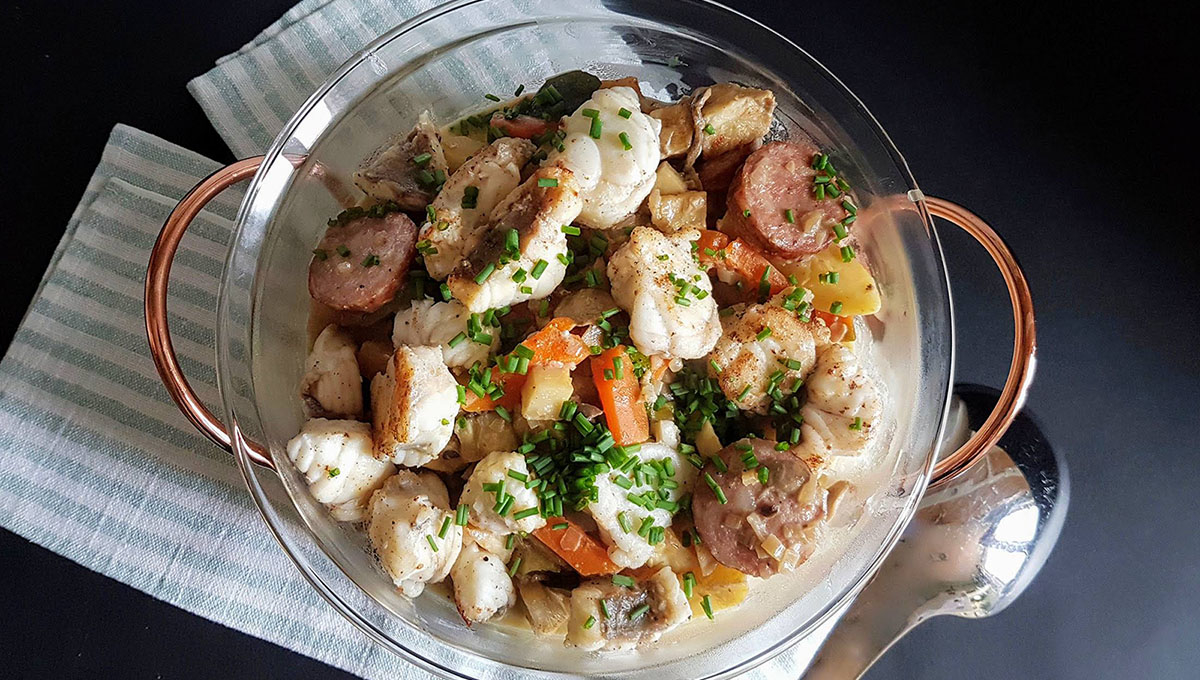 Cette recette m’a été soufflée par la revue “Bretons en cuisine”, éditée par “Ouest-France”, et devait être à la saucisse de Molène, une rareté fabriquée dans cette île (de Molène) du Finistère, fumée aux algues et difficile à trouver ailleurs. Bref, ça s’est terminé avec de la morteau qui n’a sûrement rien à voir, mais qui a donné un résultat absolument délicieux.