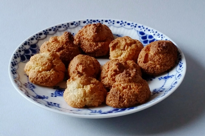 Avec une poche à douille crénelée (8 à 10 millimètre de diamètre) ou une cuiller à café, répartissez des petits tas sur une plaque recouverte de papier sulfurisé ou sur une feuille de silicone.