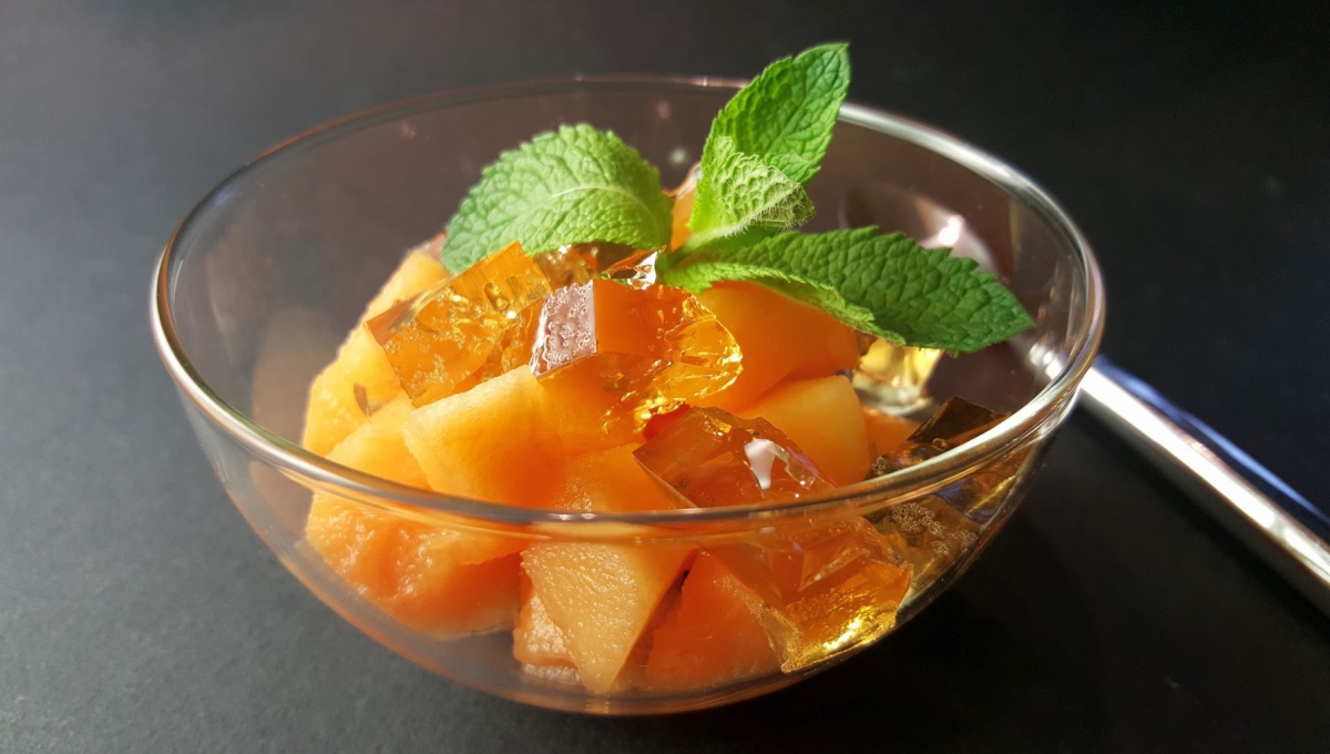 Une petite improvisation pour améliorer le sempiternel melon au porto ou au pineau. Et une délicieuse et jolie façon de finir une bouteille de vin moelleux. À vrai dire, la même idée se décline avec beaucoup d’autres fruits, comme des fraises ou des pêches.