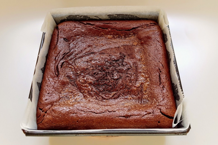 Le centre du gâteau est encore mou, surtout au centre : en refroidissant, le beurre et le chocolat vont rigidifier le gâteau.