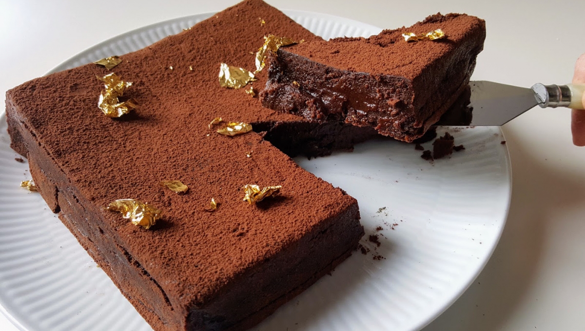 Un fondant au chocolat, certes, sans farine, mais bien pourvu en beurre… Cette recette circule entre cousines. Un quatre-quarts, en somme, avec les mêmes proportions des quatre ingrédients. Pesez les œufs (sans la coquille) et adaptez les proportions à leur poids. Vous obtenez une texture proche des truffes.