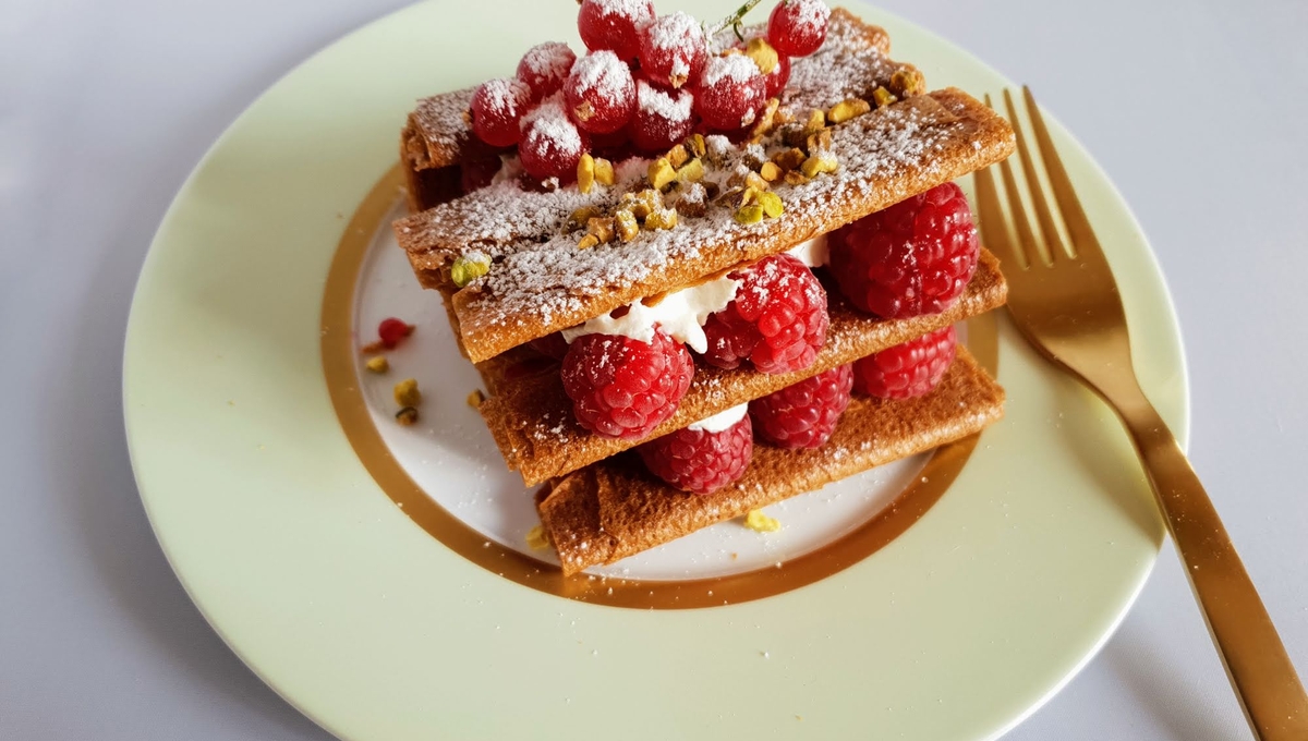 Je n’ai pas inventé le millefeuille monté à partir de crêpes dentelles que chacun garnit comme bon lui semble. À partir de framboises et d’une bombe de chantilly, le tour est joué. Mais si vous voulez affiner cette recette avec des crèmes plus élaborées ou de la ganache montée, libre à vous. En revanche, ce millefeuille vous fera des miettes…