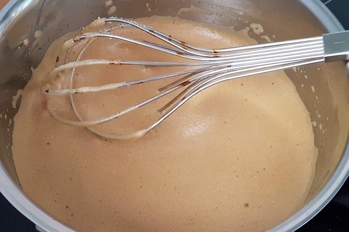 La crème doit mousser et doubler de volume, mais attention à éviter l’ébullition.