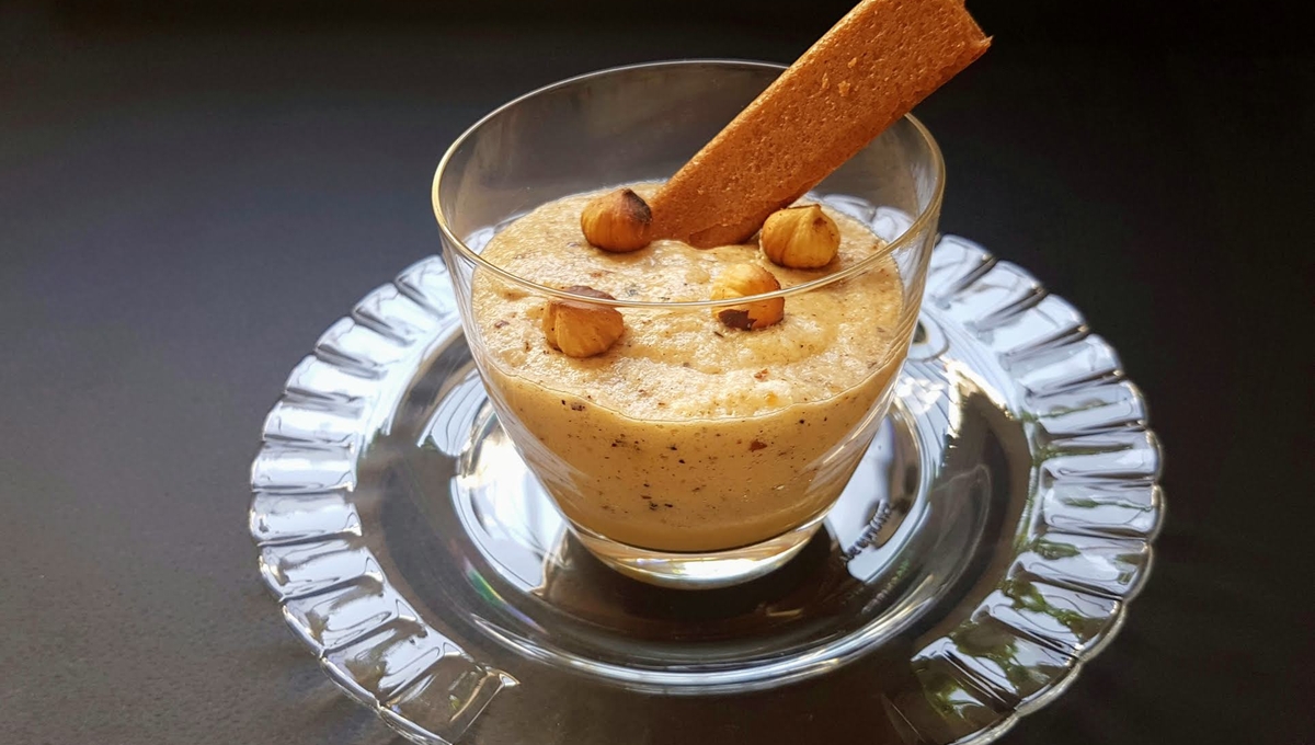 Mélangez la liqueur de noisette à la crème anglaise, puis les noisettes concassées.