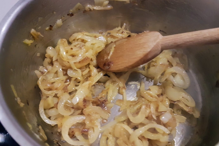 Dans le fond d’une grande casserole, versez l’huile (ou faites fondre le beurre) et faites colorer les oignons en les remuant pour qu’ils n’attachent pas.