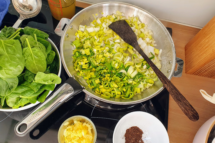 Laissez tomber les épinards en deux fois : ils sont très volumineux, mais fondent en un rien de temps.
