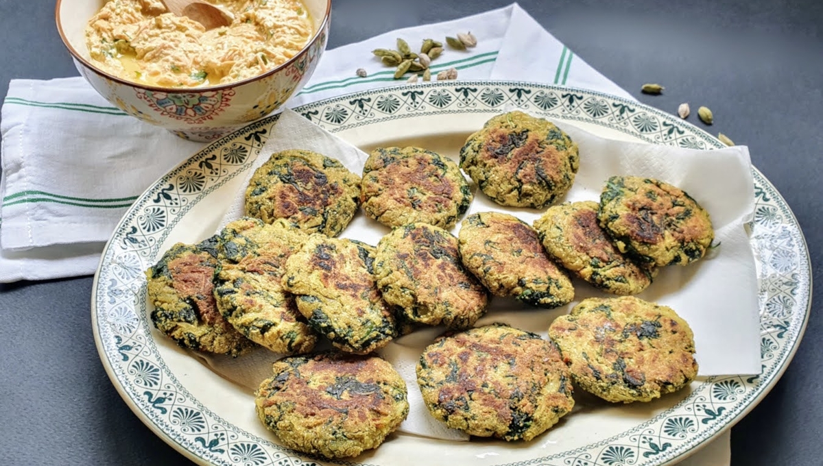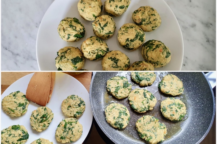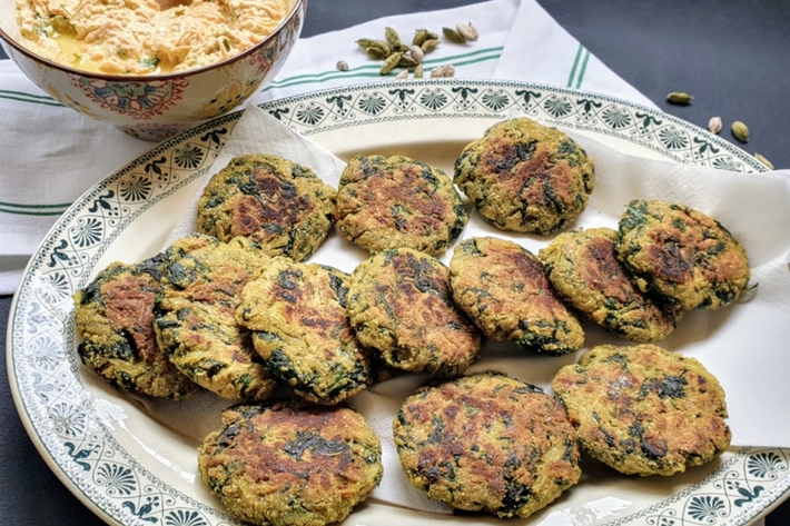 Les beignets indiens, comme des pakora, sont à base de farine de pois chiche, de légumes et d’épices. Ils sont ici déclinés aux pommes de terre et aux épinards, mais peuvent s’appliquer à d’autres légumes, ou même à des restes. Ici, ils sont frits à la poêle. Ces beignets sont complets en protéines et sans gluten. Avis !