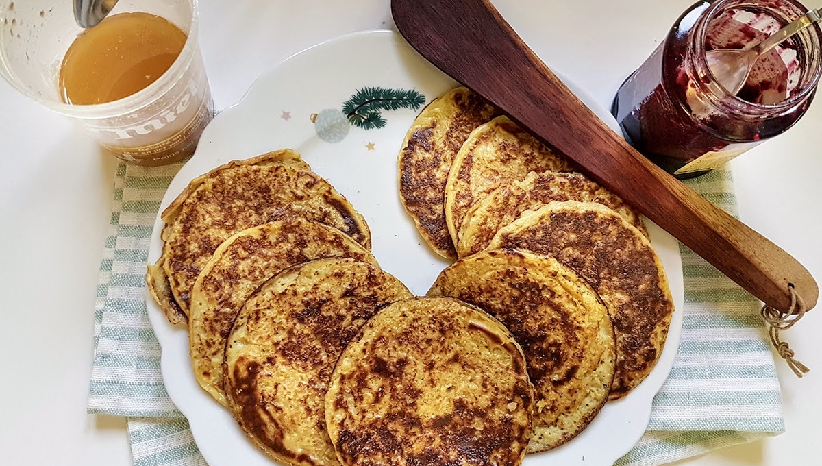 Voici des pancakes santé, intégralement aux flocons d’avoine, d’une simplicité enfantine : disons qu’il vous suffit de très peu d’ingrédients et que vous mélangez tout. What else ? Je vous conseille quand même de préparer la pâte à l’avance (la veille ou quelques heures avant de les cuire), de façon que les flocons d’avoine s’imprègnent bien du lait et des œufs.