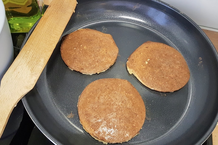 Recommencez jusqu’à épuisement de la pâte : vous devriez faire cinq tournées de 3 pancakes.
