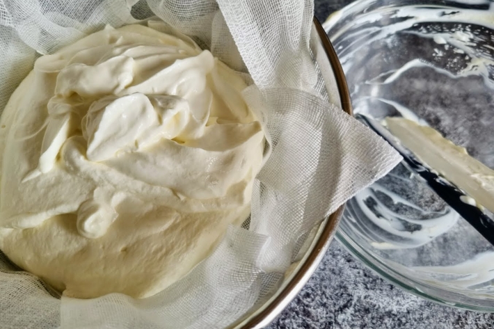 La veille, commencez par préparer le fontainebleau pour le laisser égoutter au minimum 12 heures.