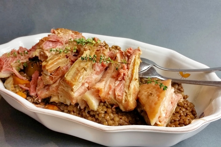 Les lentilles pour assurer une année de prospérité ! Et un plat d’hiver par excellence, chaleureux et sympathique. Faites une belle flambée dans la cheminée et servez avec de bonnes moutardes.