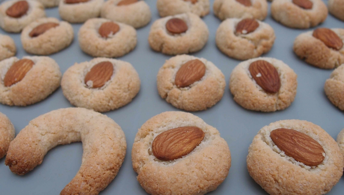 Vous pouvez aussi former des petits croissants en roulant la pâte d’amande sur le plan de travail dans le sens de la longueur, en petit serpent.