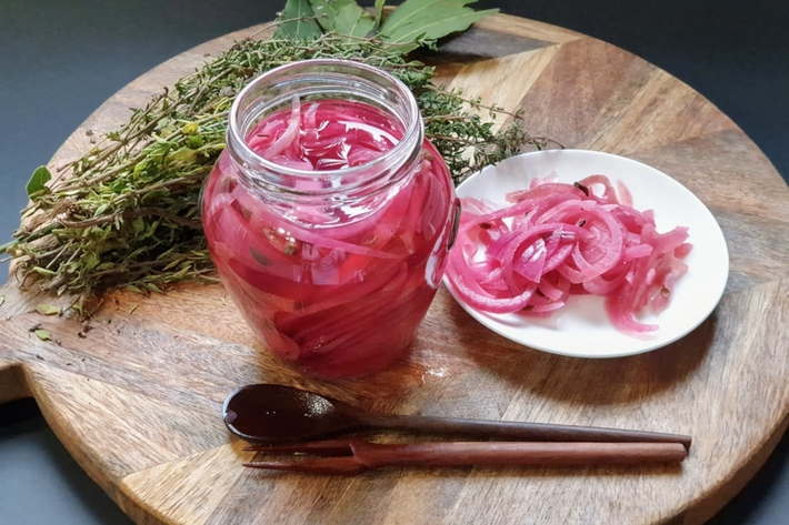 Fermez bien les bocaux, laissez refroidir avant de laisser macérer au réfrigérateur 48 heures pour que l’oignon cuise dans le vinaigre.
