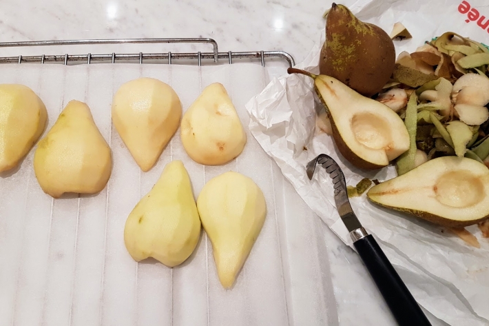 J’ai essayé avec des poires Conférence bio, plus faciles à trouver, qui ont donné un résultat satisfaisant.