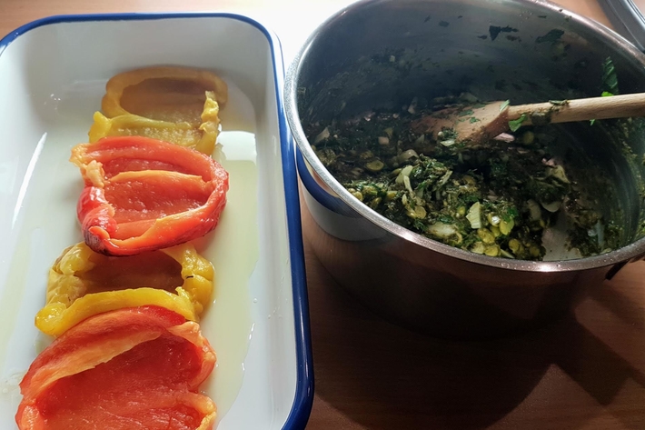 “À défaut de fèves, pas de panique, elles sont là pour donner de la consistance à la farce aux herbes et vous pouvez les remplacer par des pois cassés, des pois chiches, voire du quinoa ou, mieux, de l’orge perlé, etc.”