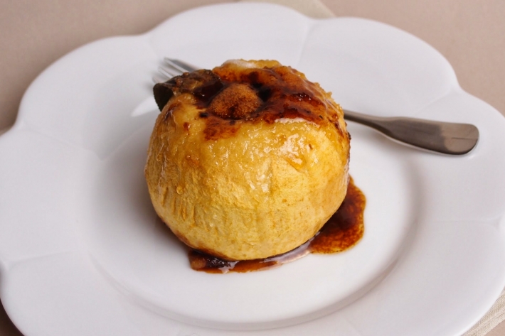 Répartissez la crème dans le cœur évidé des pommes et saupoudrez de sucre.