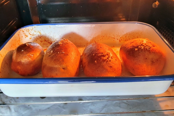 Enfournez 50 à 55 minutes jusqu’à ce que la peau soit dorée et croustillante (et le cœur fondant).