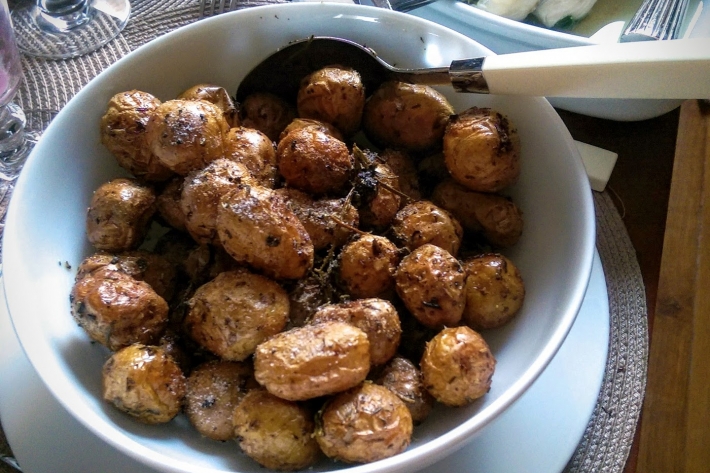Jusque là, vous pouvez avoir préparé le plat à l’avance, l’huile et l’assaisonnement imprégneront bien les pommes de terre.