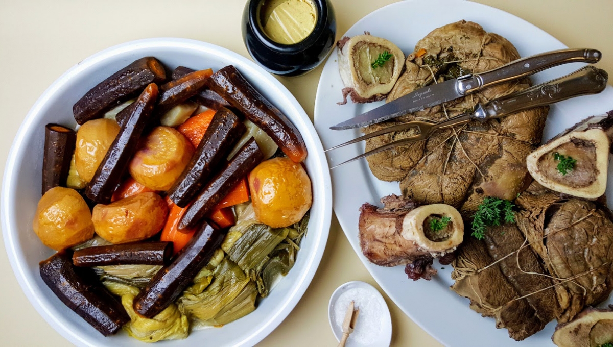 Le classique des classiques français. Et chacun de nous y va de SON pot-au-feu. Je n’ai pas de religion là-dessus, si ce n’est que le dernier que j’ai aimé, celui de la Cantine de l’embuscade, à Paris XIe, était fait avec du jarret et quelques légumes presque croquants, une très belle interprétation du pot-au-feu que je souhaite le mieux possible reprendre à mon compte. À faire en grande quantité : les restes sont encore meilleurs.