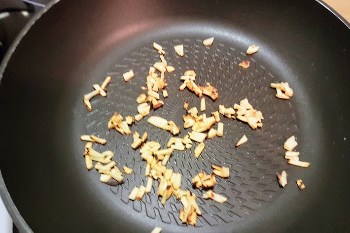 Faites griller dans une petite poêle antiadhésive l’ail restant.