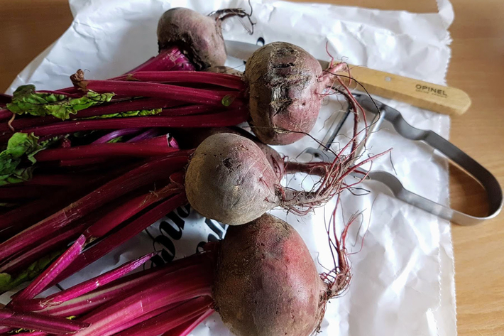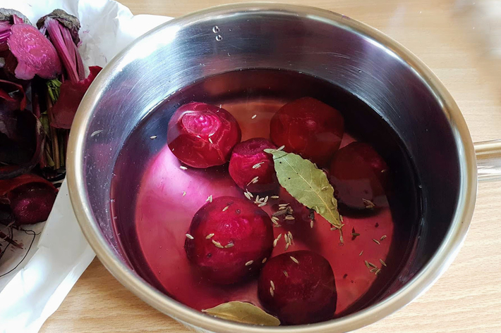 Retirez le laurier et mixez les betteraves au mixer plongeur.