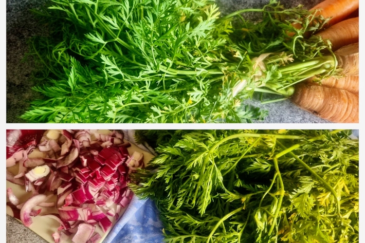 C’est bien connu, il ne faut pas jeter les fanes de carottes, dont vous ferez un excellent potage. Il suffit de l’assaisonner, bien sûr. Si vous n’avez pas le temps de les cuisiner pendant qu’elles sont fraîches et d’un beau vert cru, lavez-les bien, séchez-les, hachez-les et congelez-les jusqu’au moment de les cuisiner.
